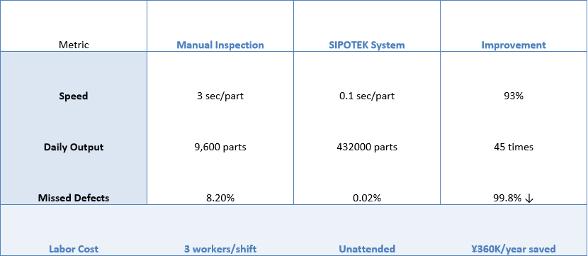 SIPOTEK’s 99.98% detection rate eliminates risks at 0.01mm-level defects.